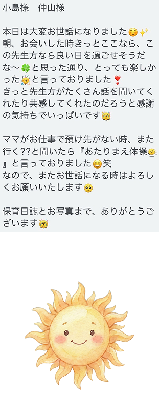 個々の成長段階や、お預かり当日のお子様の状態に合わせて、密に関わってまいります。